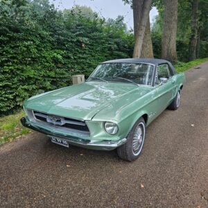 Deze Ford Mustang uit 1967 is een echte Amerikaanse muscle car en een icoon uit de autogeschiedenis. Uitgevoerd in een unieke mintgroene kleur, straalt deze klassieker zowel sportiviteit als elegantie uit. Met zijn lange motorkap, strakke lijnen en kenmerkende pony-embleem is dit een auto die overal de aandacht trekt.